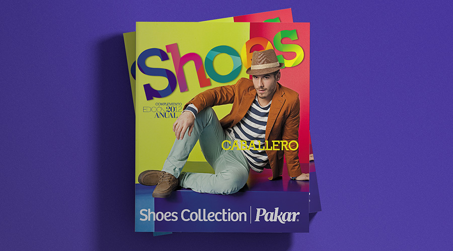 Shoes Collection Pakar is a mexican retail company, selling footwear and clothing by catalog. Every season they release a set of catalogs for all their main audiences. For this project, a new logo was designed, reflecting the colorful and geometric art direction that was established for the season. Also some print ads were made, along with the catalog layout.